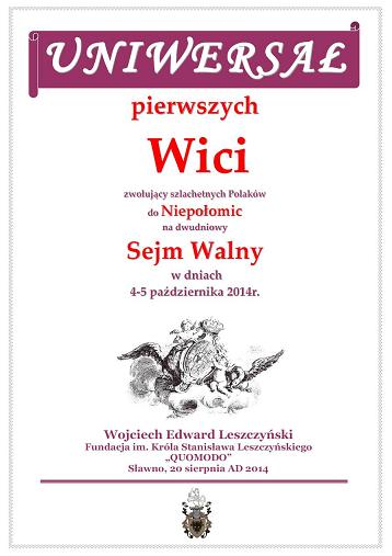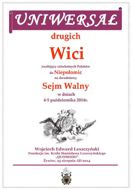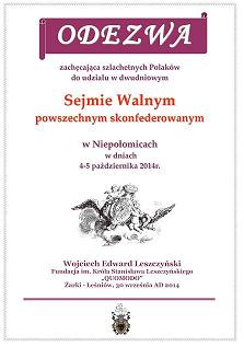ZWOŁUJĄCE SEJM WALNY SZLACHECKI 4-5 PAŹDZIERNIKA 2014 NIEPOŁOMICE
